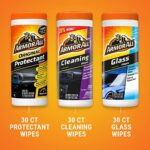 Armor All Car Wipes Multi-Pack includes a variety of car wipes that clean your vehicle’s interior surfaces and exterior glass surfaces to provide a “just-detailed” look. Start with Armor All Cleaning Wipes to lift away dirt and debris and reveal your car’s rich, natural beauty without harming delicate automotive surfaces. These multi-surface car cleaning wipes are effective on vehicle dashboards, vinyl, fabric, carpet, consoles, leather and more. Additionally, cleaning wipes won’t dry out, damage or fade automotive surfaces. Follow up with Armor All Original Protectant Wipes to help preserve your vehicle’s rich look by protecting the interior from harmful elements like UV rays and oxidation. These protectant wipes also function as a preventive measure against cracking, fading, discoloration and premature aging. Both the protectant wipes and cleaning wipes are lint-free and will not leave a greasy residue on your hands. End with Armor All Glass Wipes, which leave a crystal clear, streak-free shine on your car’s glass surfaces by easily removing filmy residue, road grime, bugs, fingerprints and more. All these car cleaning wipes provide effective cleaning in convenient, disposable wipes. Help keep your vehicle looking and feeling like new with Armor All.