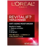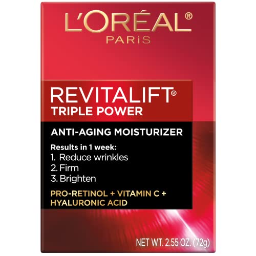 About this item Anti-aging moisturizer cream: This anti-aging retinol face cream addresses multiple signs of aging skin in just 1 week: reduces wrinkles, re-firms contours, brightens skin, smooths skin roughness and deeply hydrates for younger-looking skin Moisturizer with Retinol: Formulated with 3 top recommended ingredients: Pro-Retinol, Hyaluronic Acid and Vitamin C. Pro Retinol reduces wrinkles and firms skin. Hyaluronic Acid hydrates and plumps skin. Vitamin C boosts radiance and evens tone Hydrating Moisturizer: Gift your skin a daily dose of hydration from Revitalift anti-wrinkle retinol night cream to provide your skin essential moisture to keep skin hydrated and healthy For everyday use: Smooth this intensive cream until thoroughly absorbed. Use as a day or night cream for face and neck. Because this retinol cream for face visibly smooths skin texture, it wears well under makeup and can be used as a primer