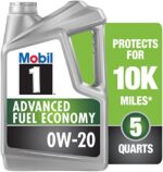 About this item Mobil 1 Advanced Fuel Economy full-synthetic motor oil 0W-20 is low-viscosity to help improve fuel economy.* Utilizes Mobil 1’s signature Triple Action Formula to deliver outstanding engine performance, protection, and cleanliness Helps protect critical engine parts for up to 10,000 miles between oil changesm,** controlling oxidation to prevent oil breakdown and maintaining excellent viscosity Meets ILSAC GF-6 standards to help provide low-speed pre-ignition (LSPI) and timing chain wear protection while keeping your engine clean Helps extend engine life by working to prevent damaging deposits and sludge buildup
