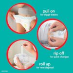 - Easy disposal—simply RIP the Easy-Tear Sides, ROLL the diaper and secure with attached disposal tape