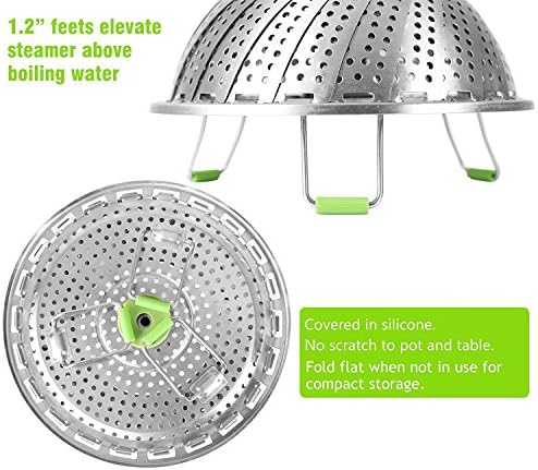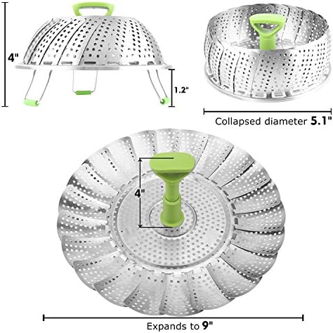 Steamer Basket Size: Collapsed Diameter is 5.1″ . Expandable to 9″